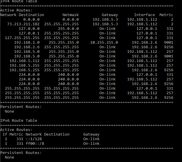 Adresse réseau Masque de réseau Adresse de passerelle Métrique